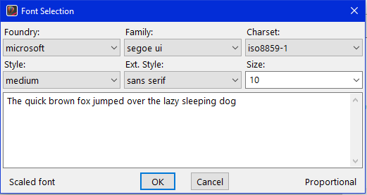 If you are unhappy with the way your fonts look, convert usage of the non-scalable font to their closest equivalent scalable font. To find a suitable font, use the Composition Editor to change the font property of a User Interface component like an entry field. The Font Dialog looks like this. The ‘Scaled font’ in the lower left of the dialog indicates the font is suitable for usage within a Hi DPI setting.