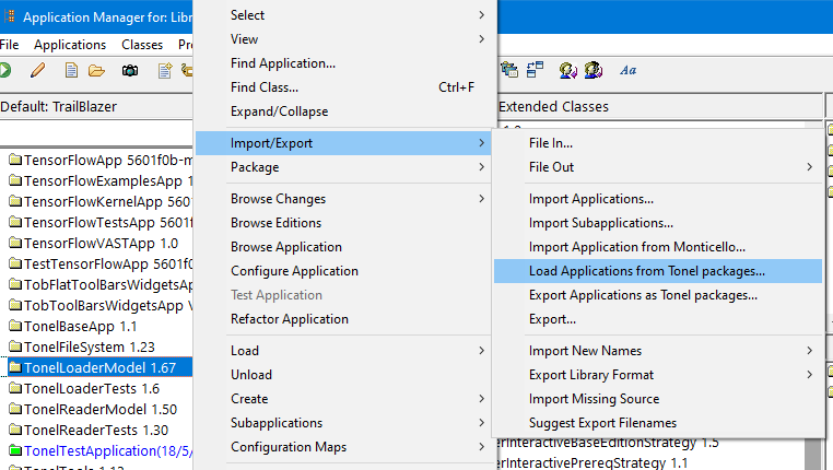 You can load individual Tonel packages as Applications or export VAST Applications as Tonel packages via Application Manager's Import/Export.