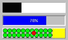 ribbonImage: aPixmapSpecifies the renderable object which draws as the completed ribbon of the progress bar. This object is drawn instead of a color strip. Note that when a ribbon image is used, a label (the showPercentage or image resources) will be drawn using the imageColor resource, or if that is nil, the foregroundColor resource.